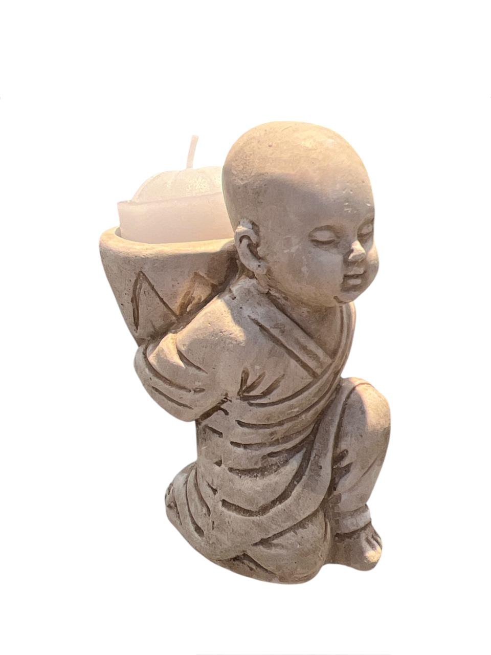 ESCULTURA BUDA PORTA VELA DE YESO REVESTIDO EN RESINA