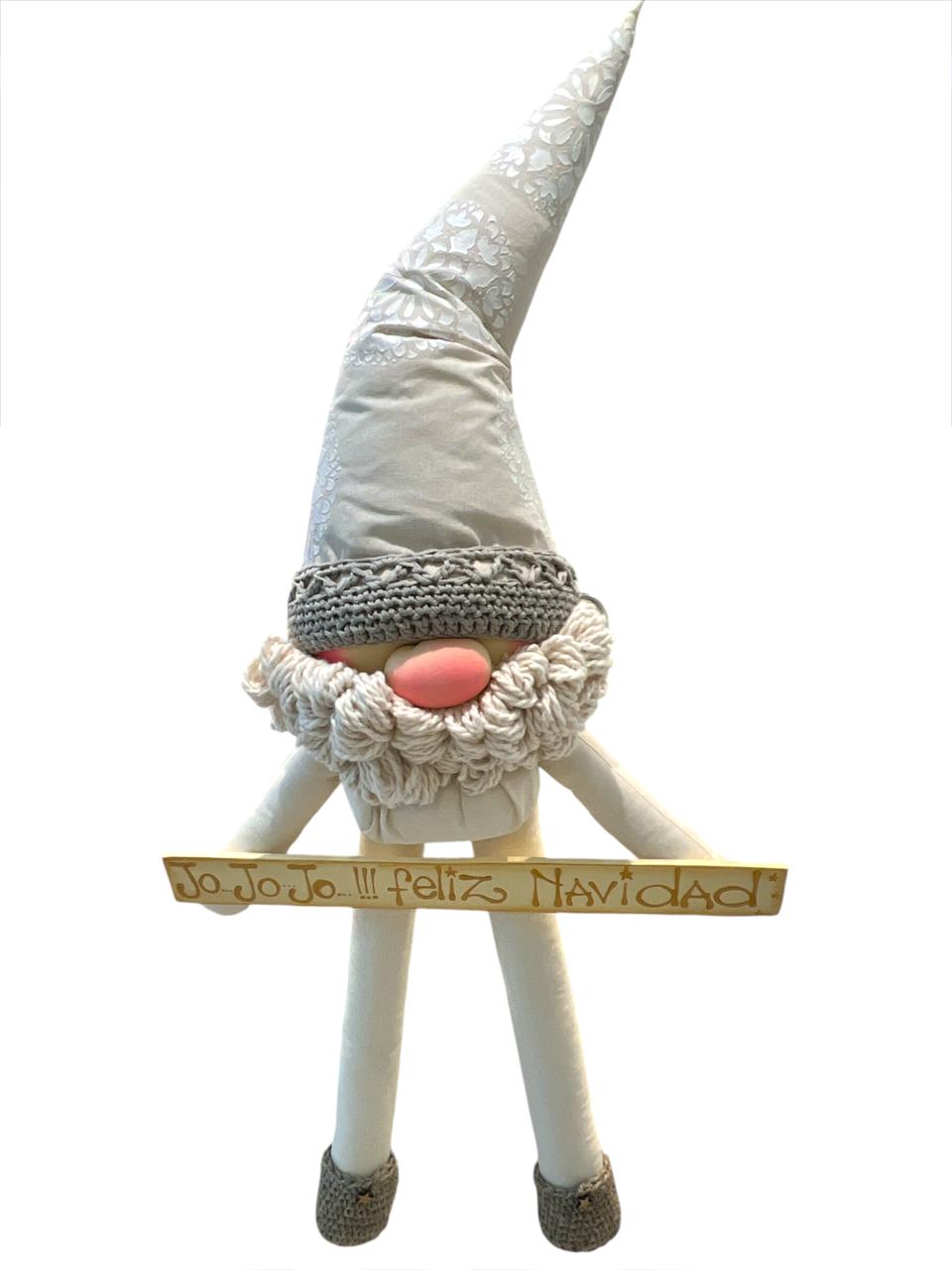 PAPA NOEL DE TELA HECHO ARTESANALMENTE CON CARTEL EN MADERA