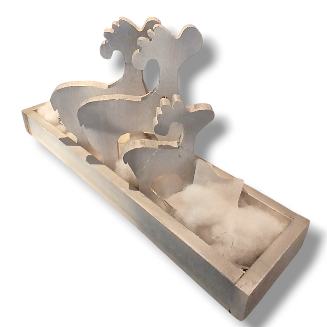 PINTADO CON BASE BLANCA Y BRILLO DORADO O BRILLO PLATEADO Ó TONO MADERA NATURAL.