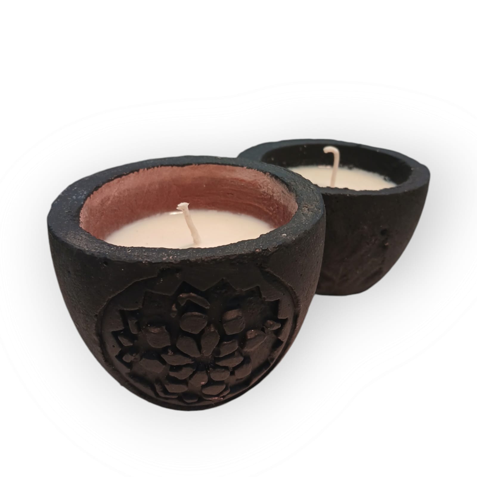 VELAS DE SOJA AROMATIZADAS EN CUENCOS DE CEMENTO